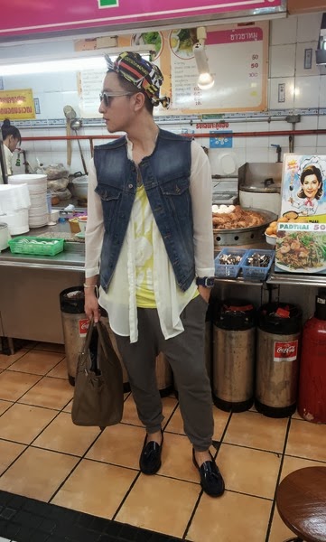 這個搭配裡,內搭襯衫領片與牛仔背心的領片都被我拆掉了。 |