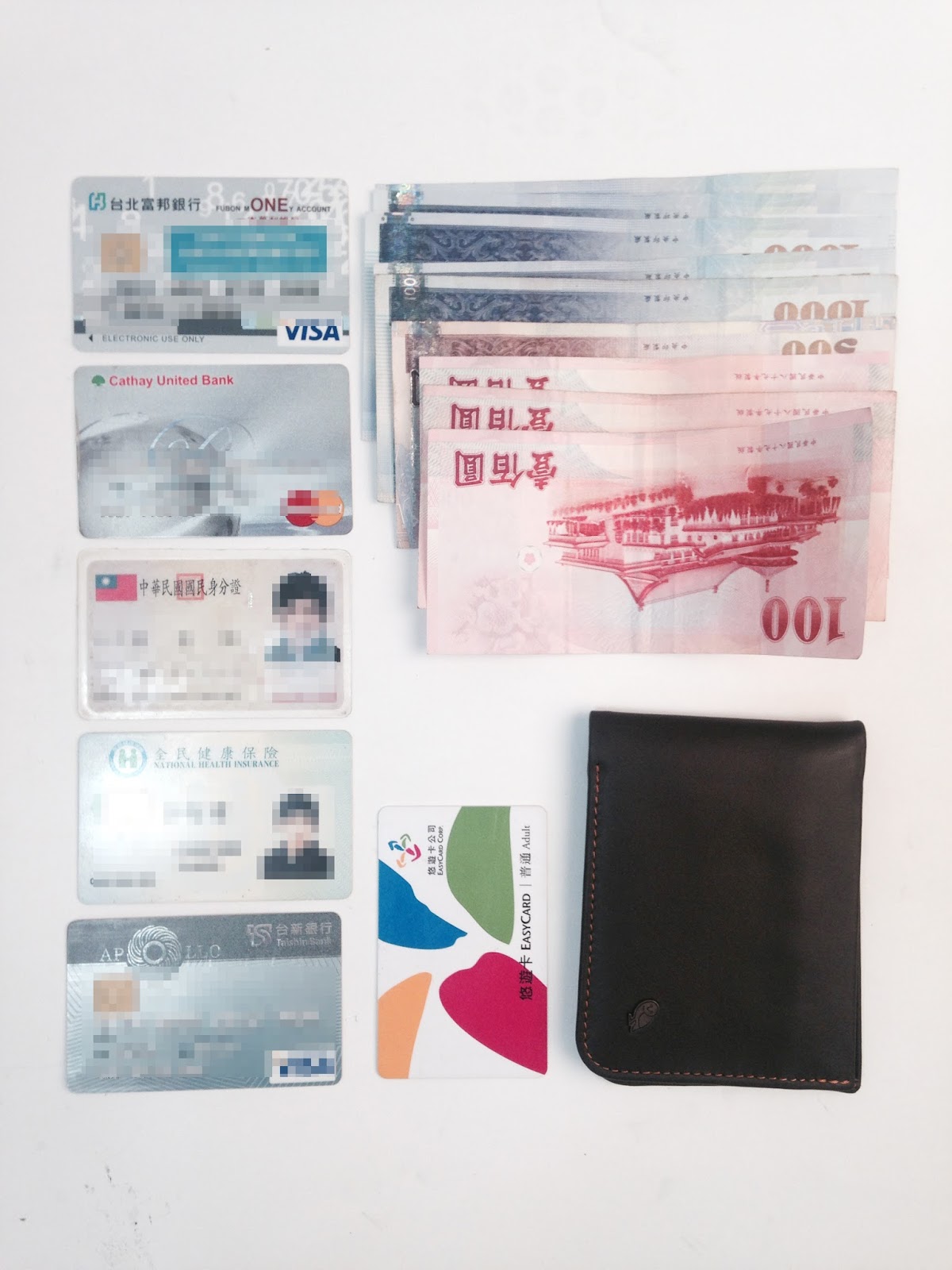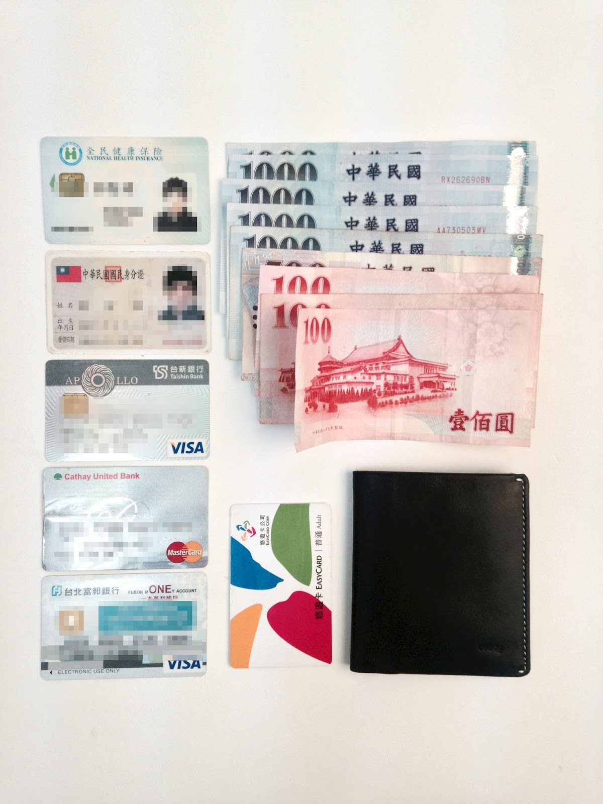 一樣,一些現金加上常用的卡,我們來擺放看看
