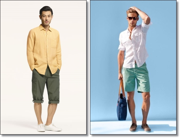 因應趨勢,我們已經能在冬天看到很多九分褲的例子了,但那通常有搭配符合冬季的各式襪款。來到夏季後除了褲長的縮短外,更可以捨去襪子的治裝費(一定要穿的話船型襪便宜一點),瀟灑的露出腳踝;至於縮到更短的例子:也就是短褲在夏季有多麼常見我們就不再多提了。